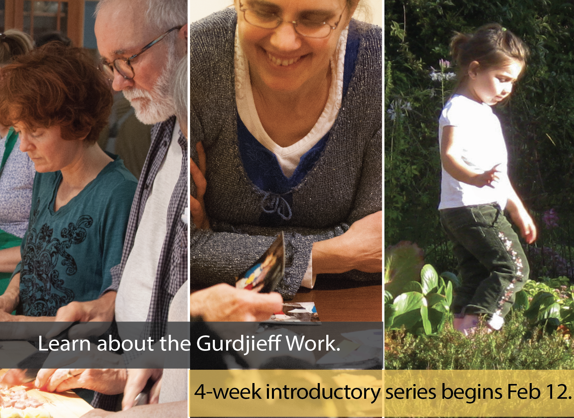 Participate in a small group interested in learning more about the Gurdjieff Work. A series of 4 discussions will look at topics including: